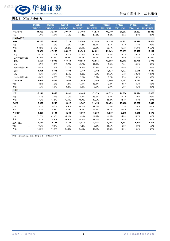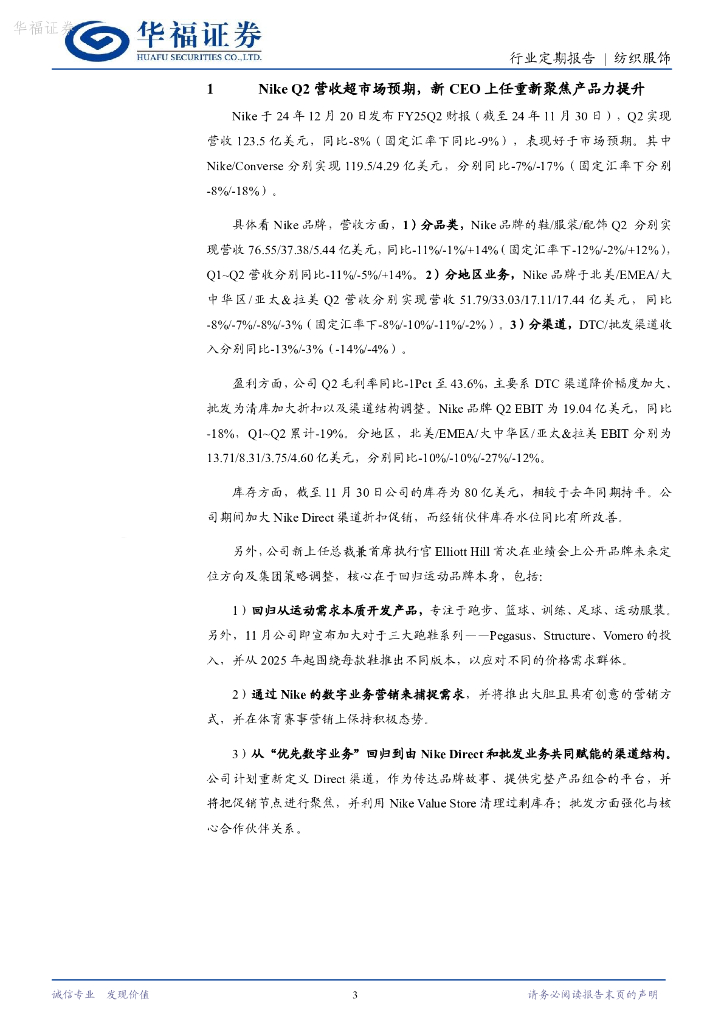 华福证券:纺织服饰行业24W52周观点:NikeQ2营收超市场预期,新CEO上任重新聚焦产品力提升.pdf