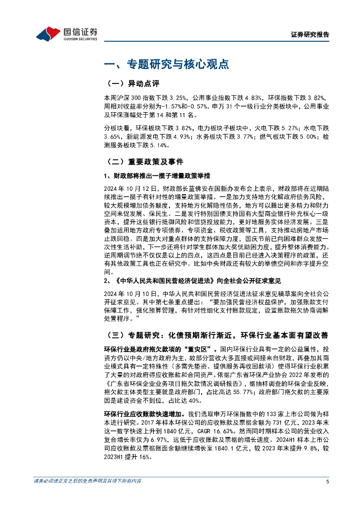 国信证券:公用环保202410第1期:财政部拟加大力度支持地方化解债务风险,多家电力上市公司披露前三季度发电量.pdf