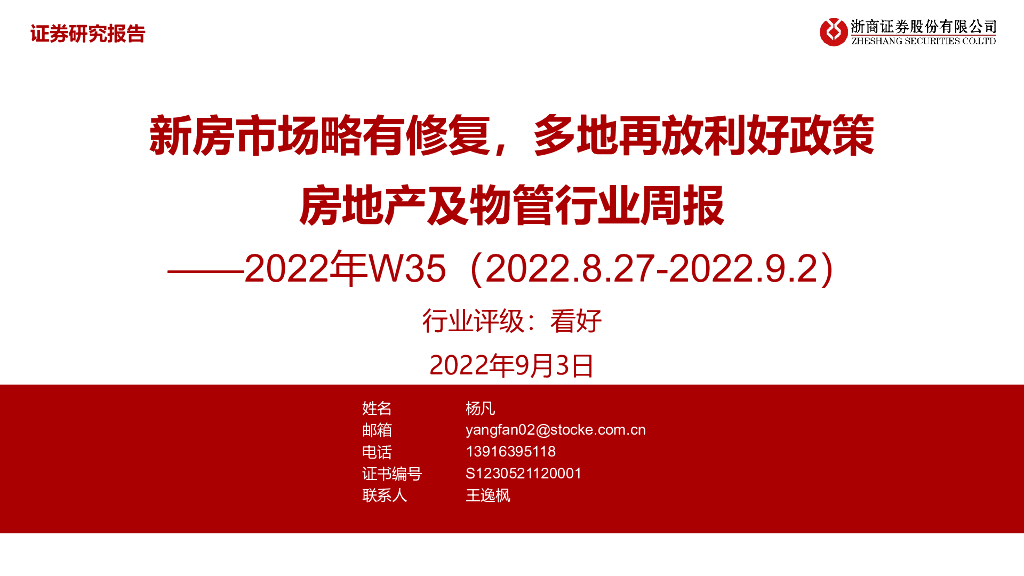 浙商证券:房地产及物管行业周报2022年W35:新房市场略有修复,多地再放利好政策.pdf