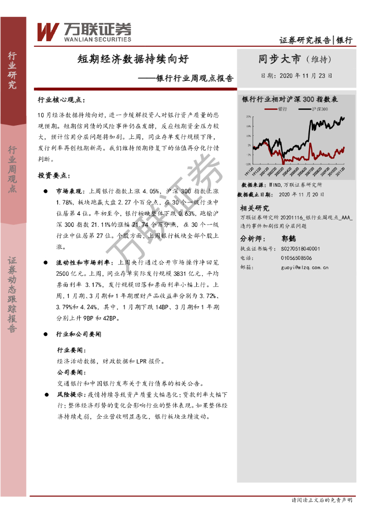 万联证券:银行行业周观点报告:短期经济数据持续向好.pdf