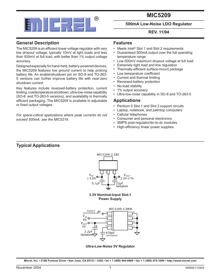 NATIONAL SEMICONDUCTOR LP2954/LP2954A 5V and Adjustable Micropower Low-Dropout Voltage Regulators 说明书