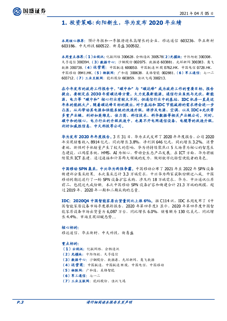 国盛证券:通信行业周报:向阳新生,华为发布2020年业绩.pdf