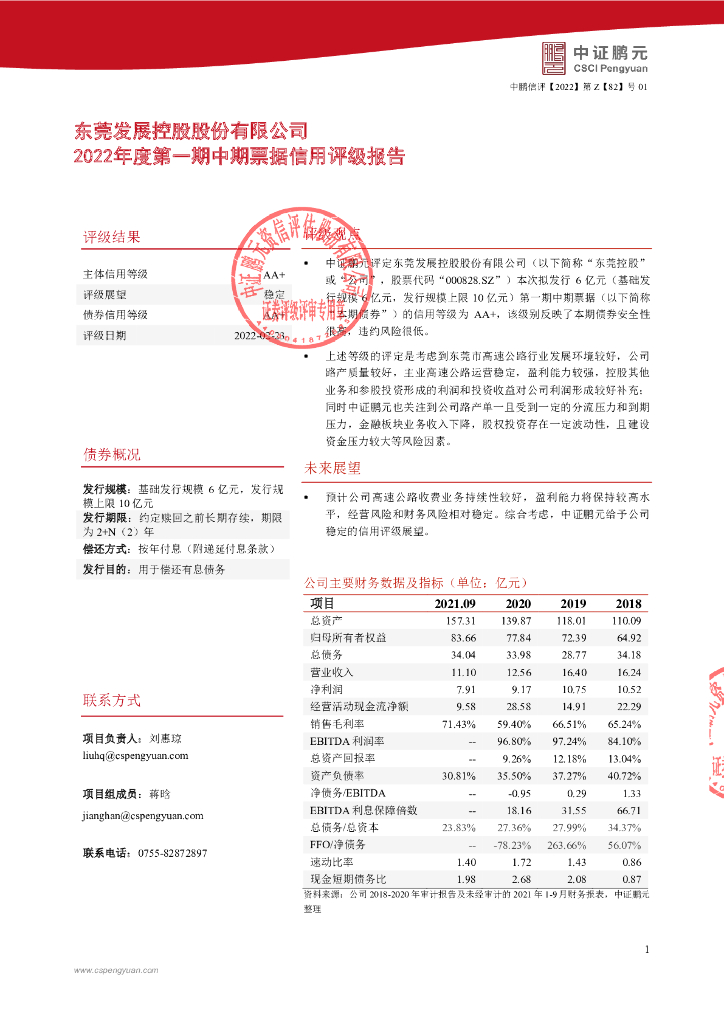 鹏元:东莞发展控股股份有限公司2022年度第一期中期票据信用评级报告.pdf