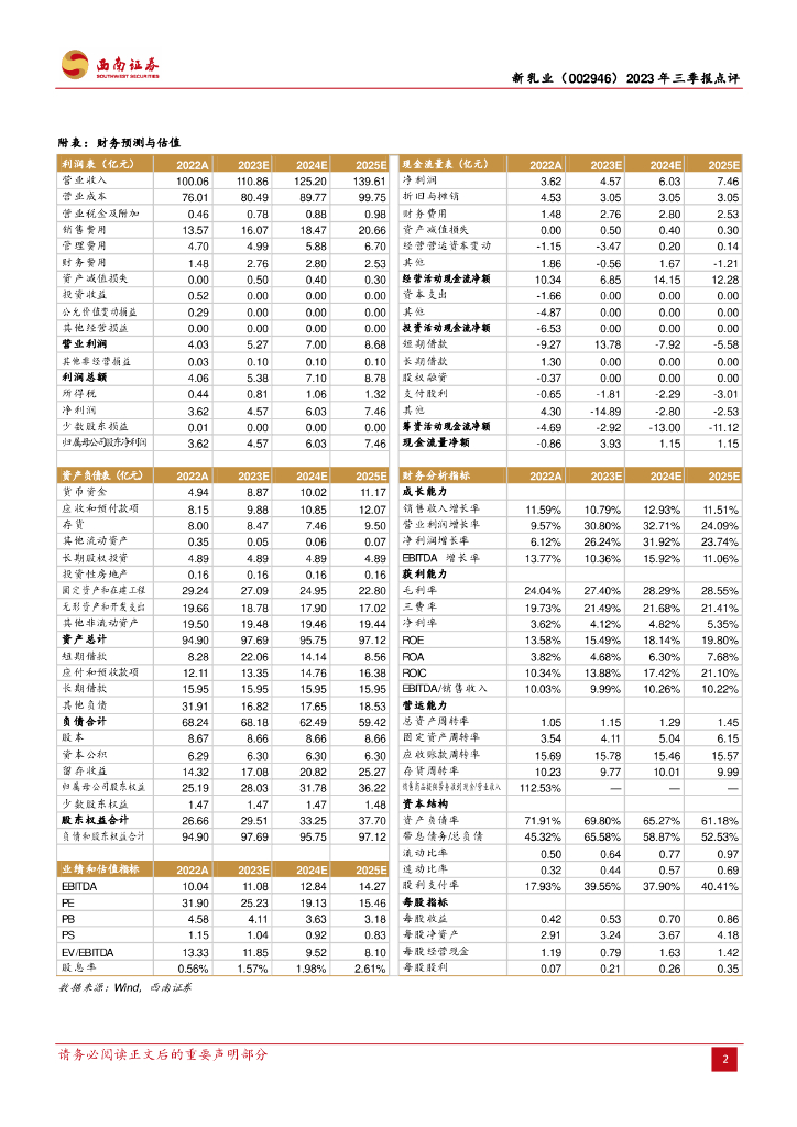 西南证券:新乳业(002946)-2023年三季报点评:扣非利润弹性亮眼,收入稳健增长.pdf