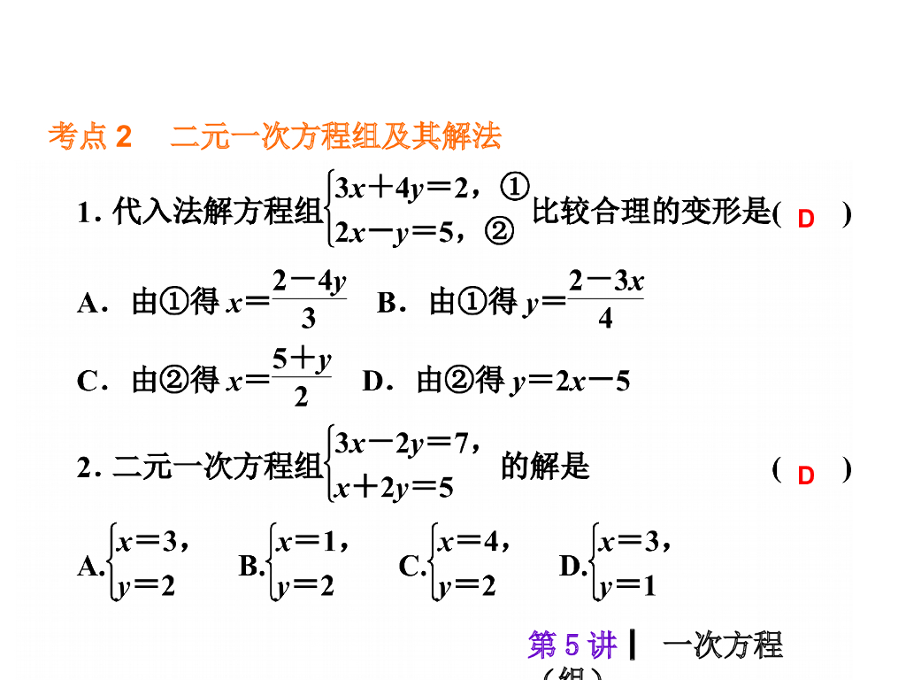 中考复习课件【第5讲】一次方程(组)(31页)ppt课件.ppt