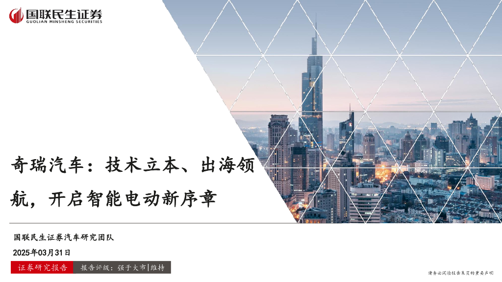 国联民生证券:奇瑞汽车:技术立本、出海领航,开启智能电动新序章.pdf