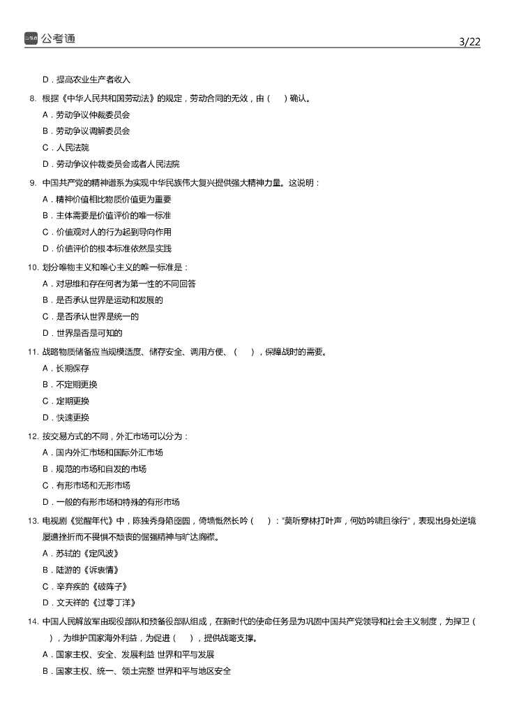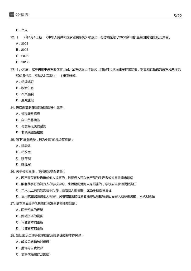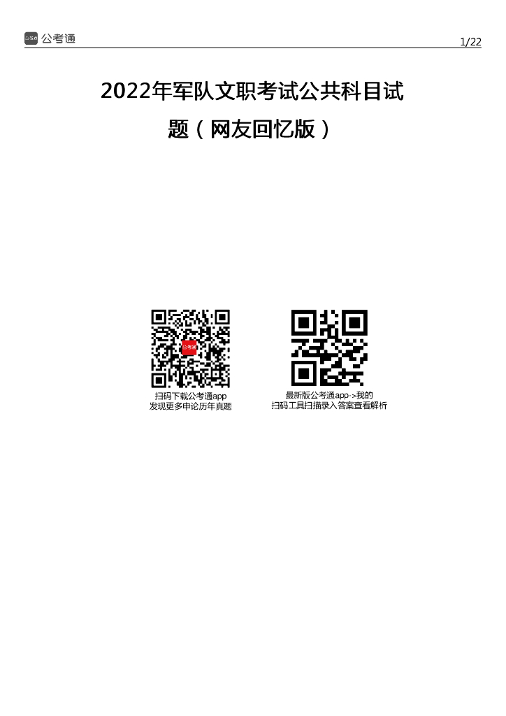 2022年军队文职考试公共科目试题(考生回忆版).pdf
