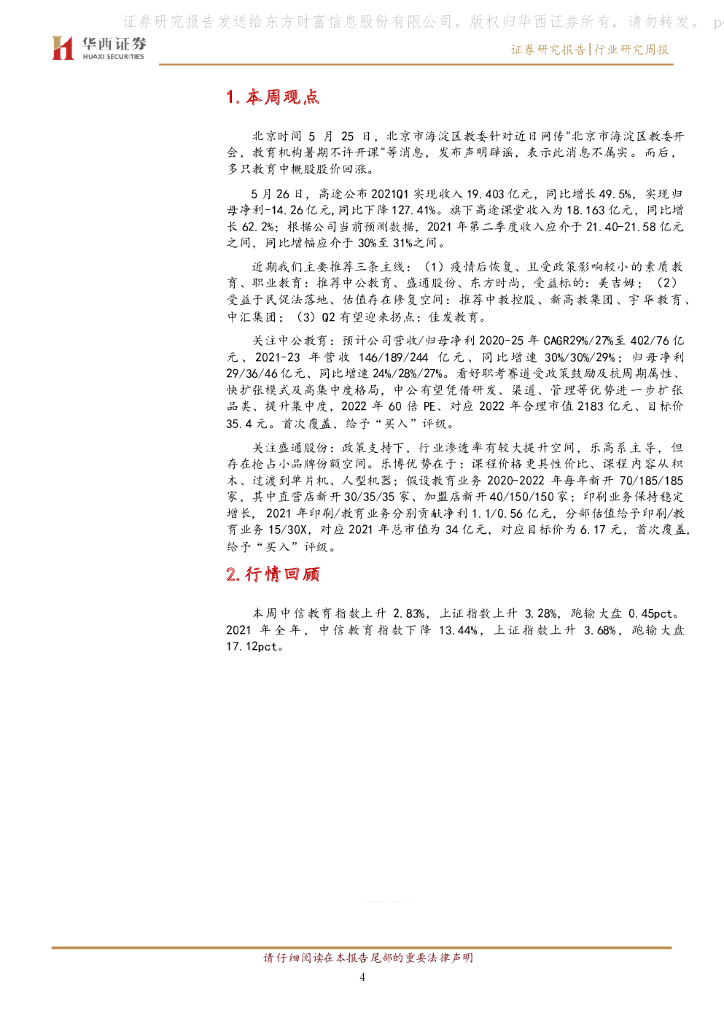华西证券:教育行业周报:海淀教委辟谣教培暑期不开课,高途21Q1收入+49.5%.pdf
