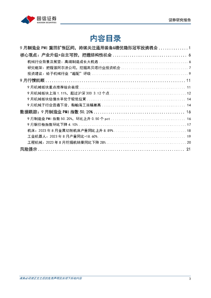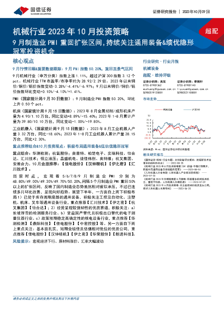 国信证券:机械行业2023年10月投资策略:9月制造业PMI重回扩张区间,持续关注通用装备&绩优隐形冠军投资机会.pdf