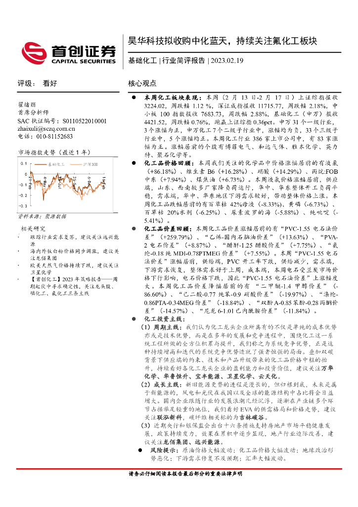 首创证券:基础化工行业简评报告:昊华科技拟收购中化蓝天,持续关注氟化工板块.pdf