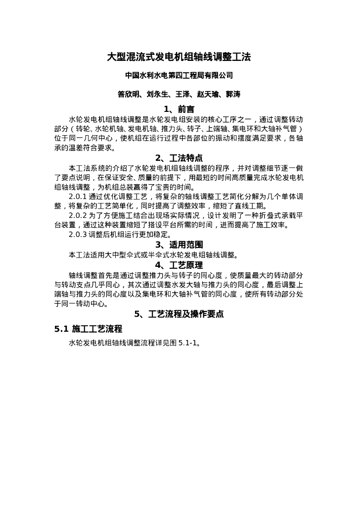 QHGF-2022167 大型混流式发电机组轴线调整工法.doc