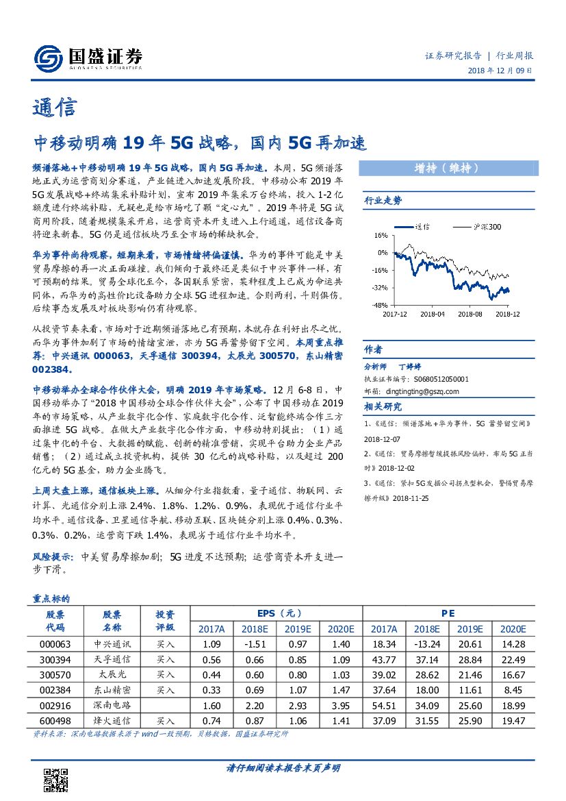 国盛证券:通信行业周报:中移动明确19年5G战略,国内5G再加速.pdf
