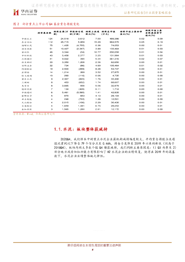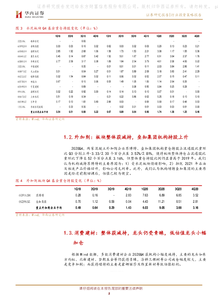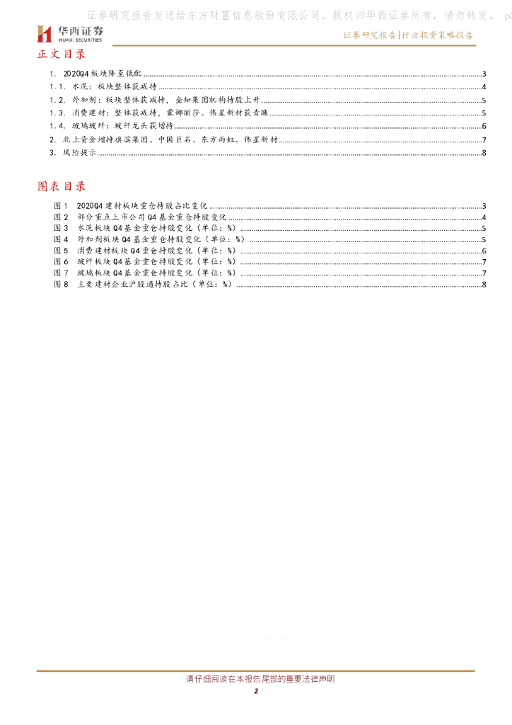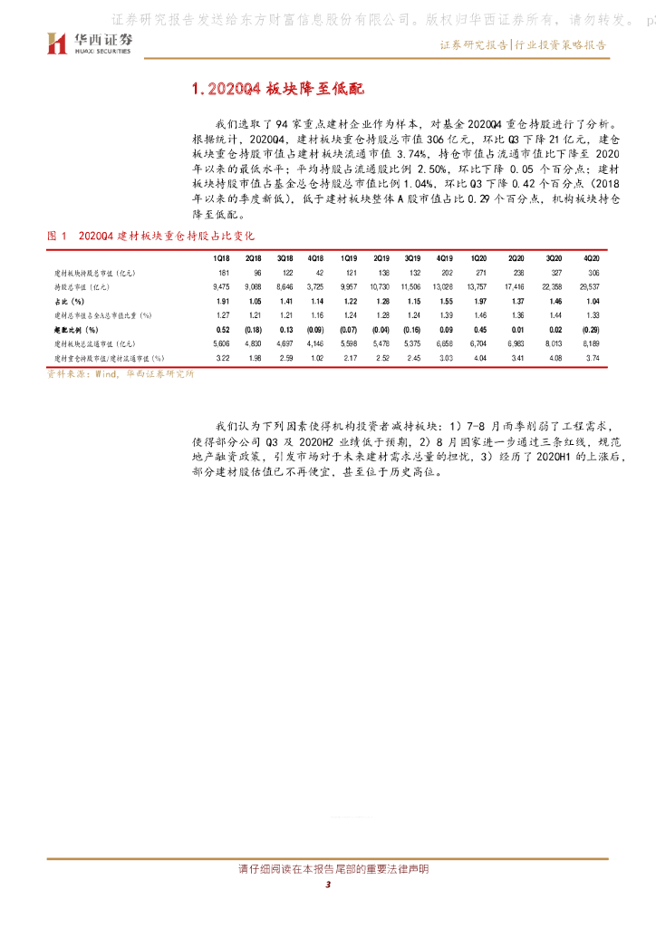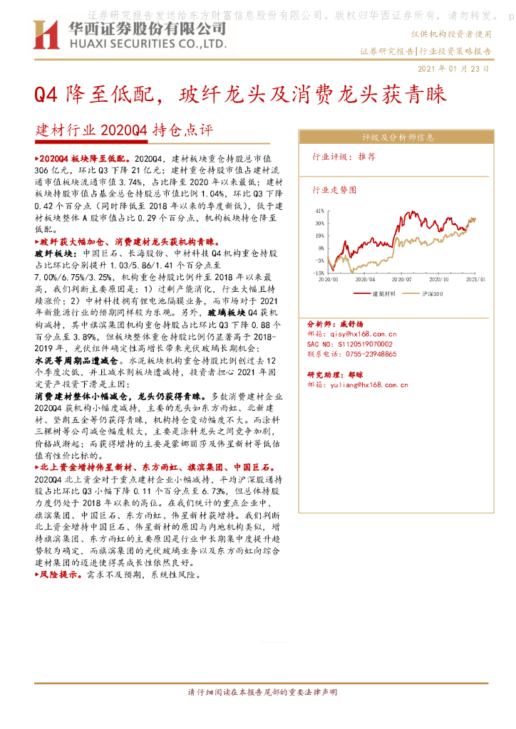 华西证券:建材行业2020Q4持仓点评:Q4降至低配,玻纤龙头及消费龙头获青睐.pdf