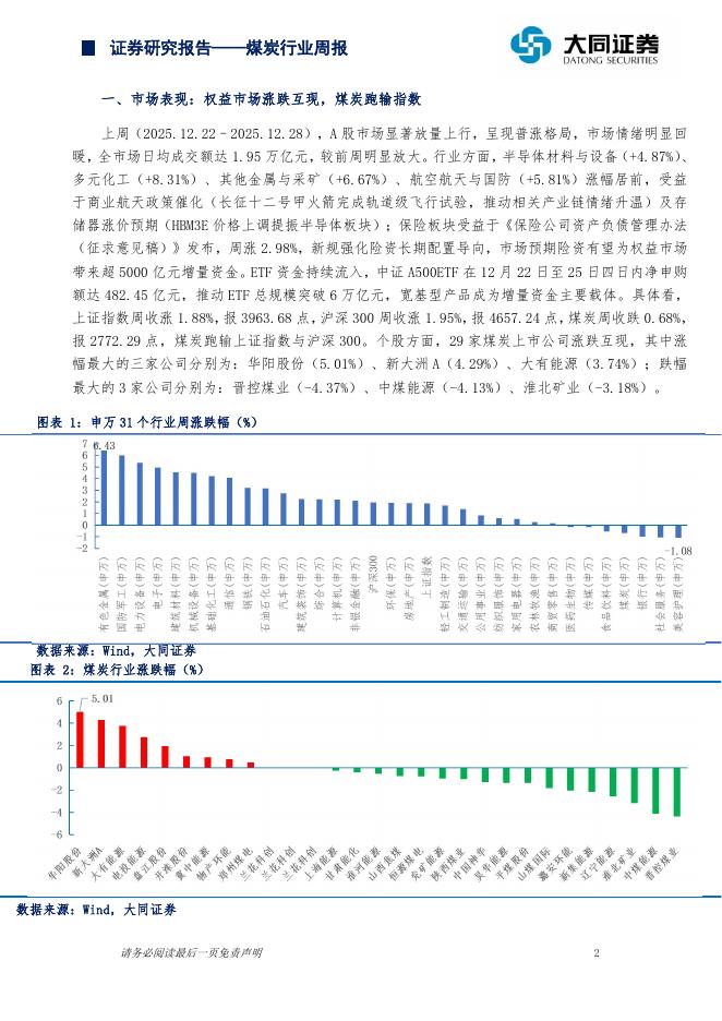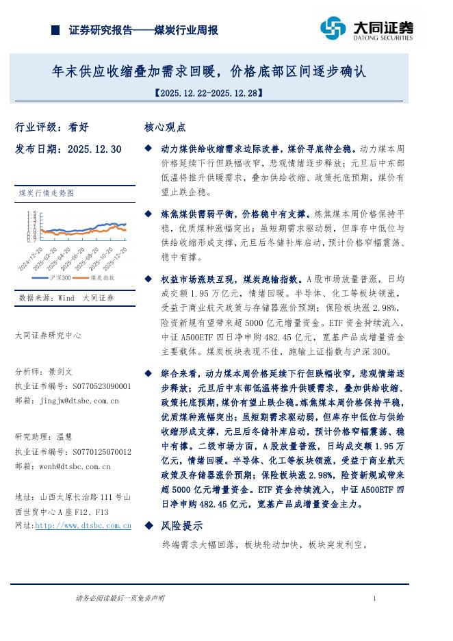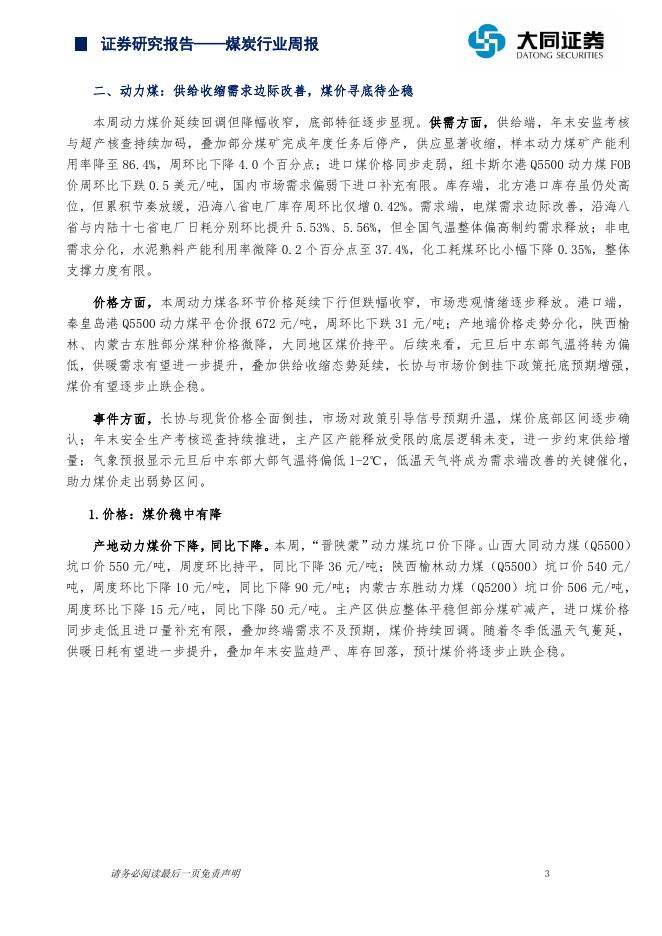 大同证券:煤炭行业周报:年末供应收缩叠加需求回暖,价格底部区间逐步确认.pdf