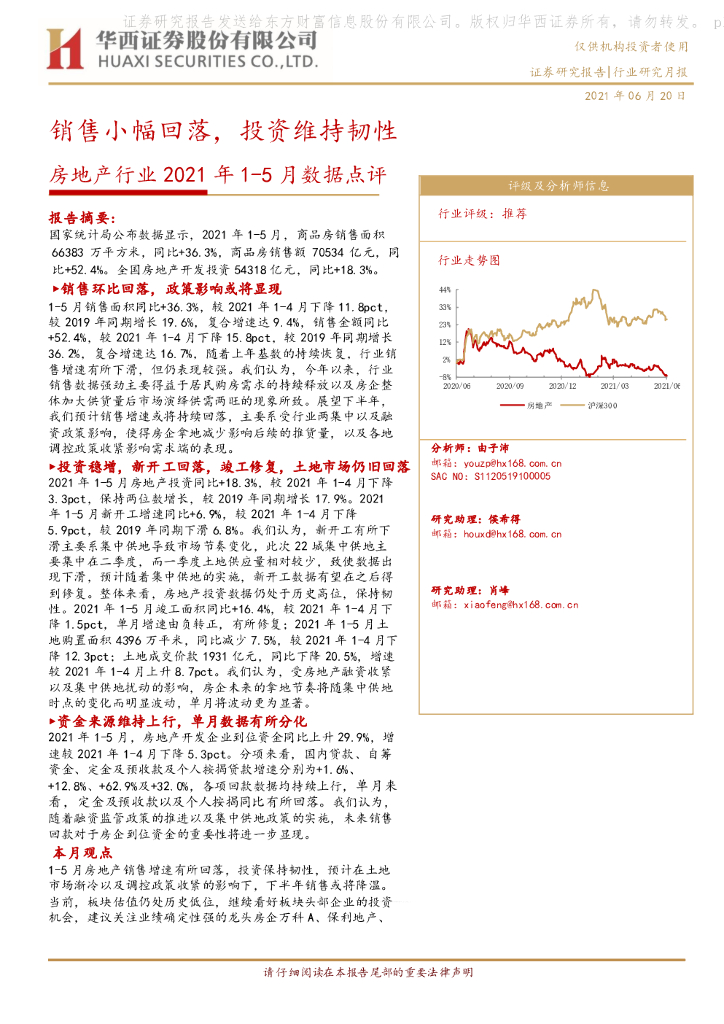 华西证券:房地产行业2021年1-5月数据点评:销售小幅回落,投资维持韧性.pdf