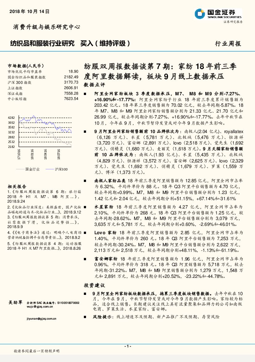国金证券:纺服双周报数据谈第7期:家纺18年前三季度阿里数据解读,板块9月线上数据承压.pdf