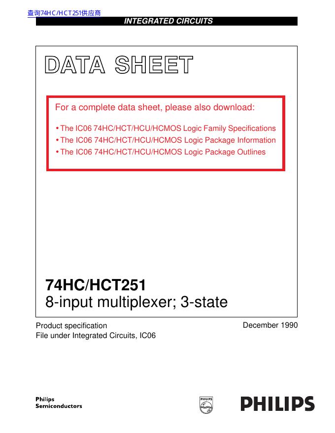 PHILIPS 74HC/HCT251 8-input multiplexer; 3-state 数据手册.pdf