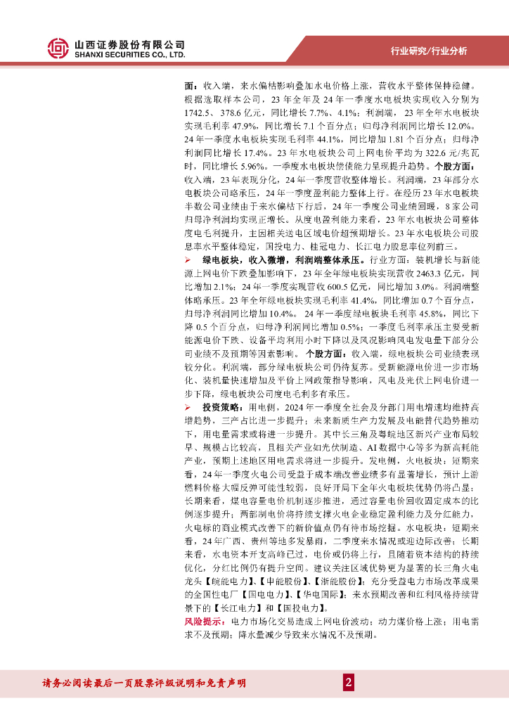 山西证券:电力及公用事业行业2023年报及2024年一季报综述:需求侧高增,火电业绩超预期.pdf