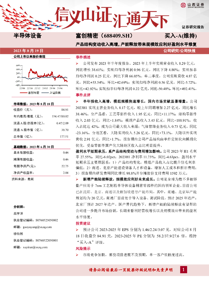 山西证券:富创精密(688409)-产品结构变动收入高增,产能释放带来规模效应利好盈利水平修复.pdf