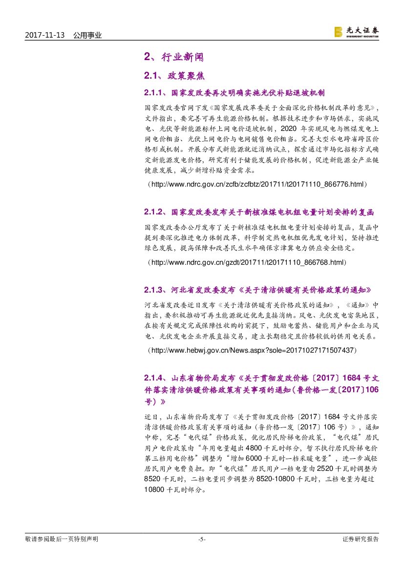 光大证券:公用事业行业周报:分布式发电市场化交易试点将启,新能源上网电价退坡.pdf
