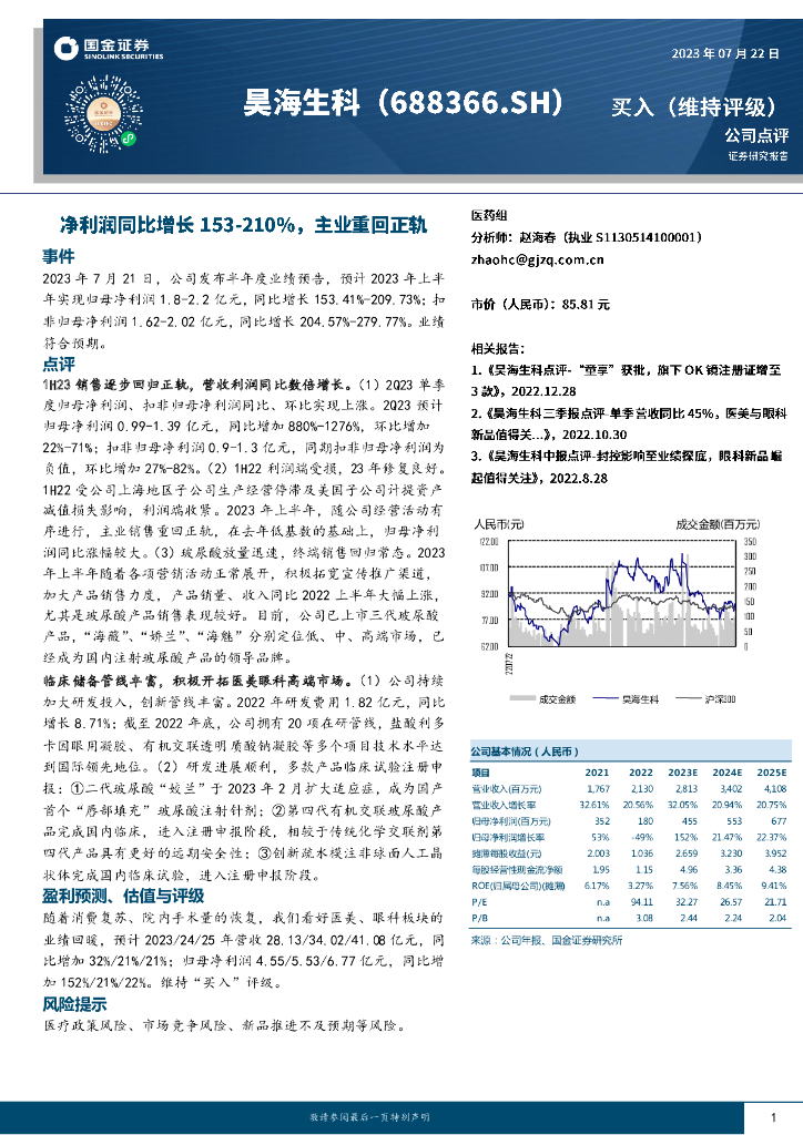 国金证券:昊海生科(688366)-净利润同比增长153-210%,主业重回正轨.pdf