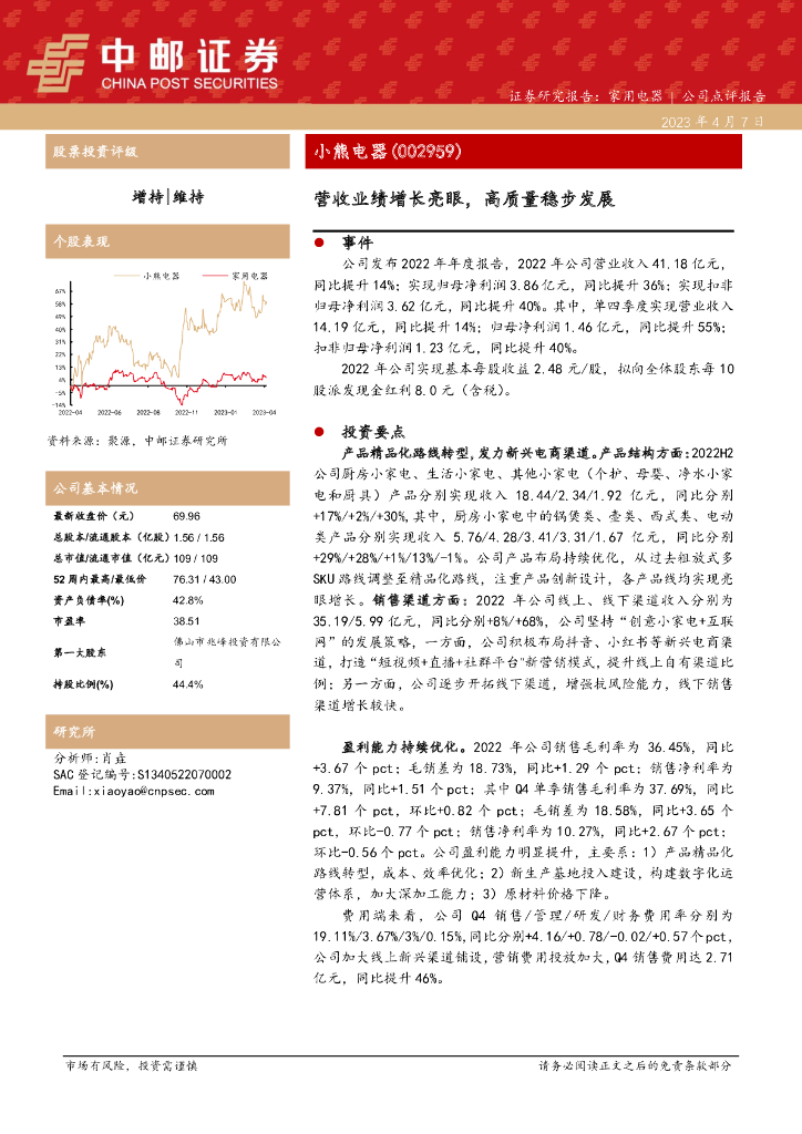 中邮证券:小熊电器(002959)-营收业绩增长亮眼,高质量稳步发展.pdf