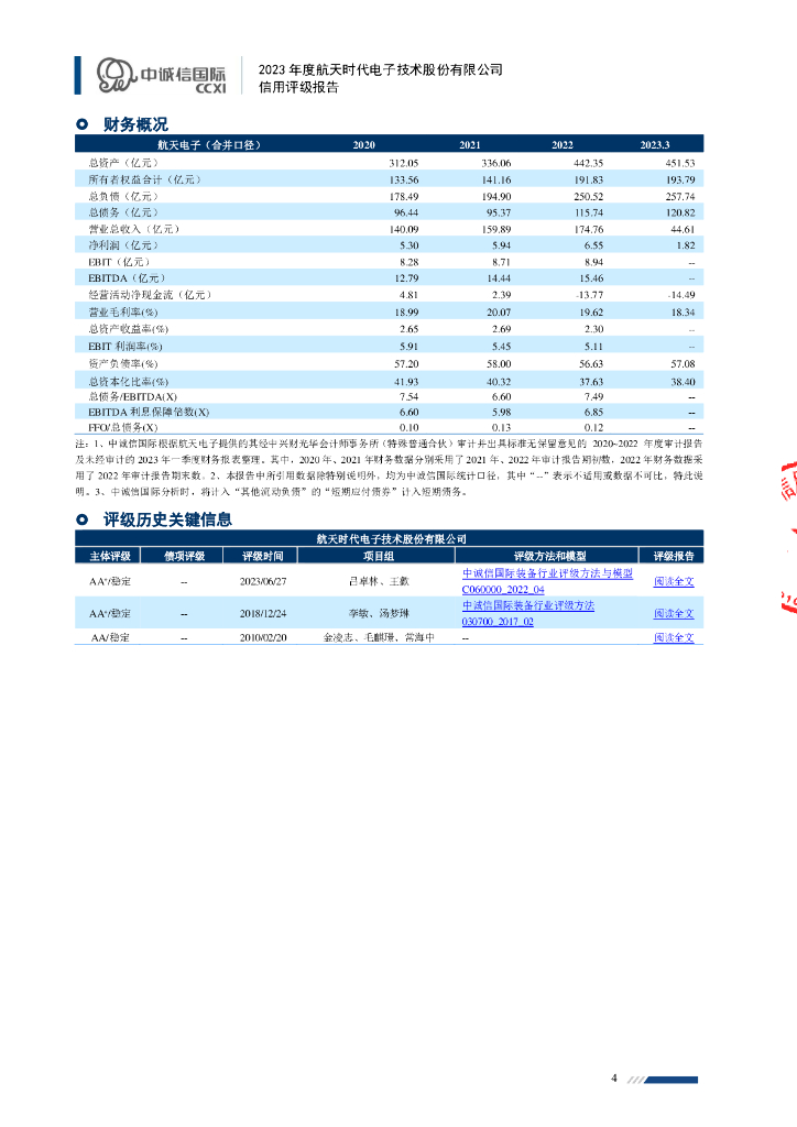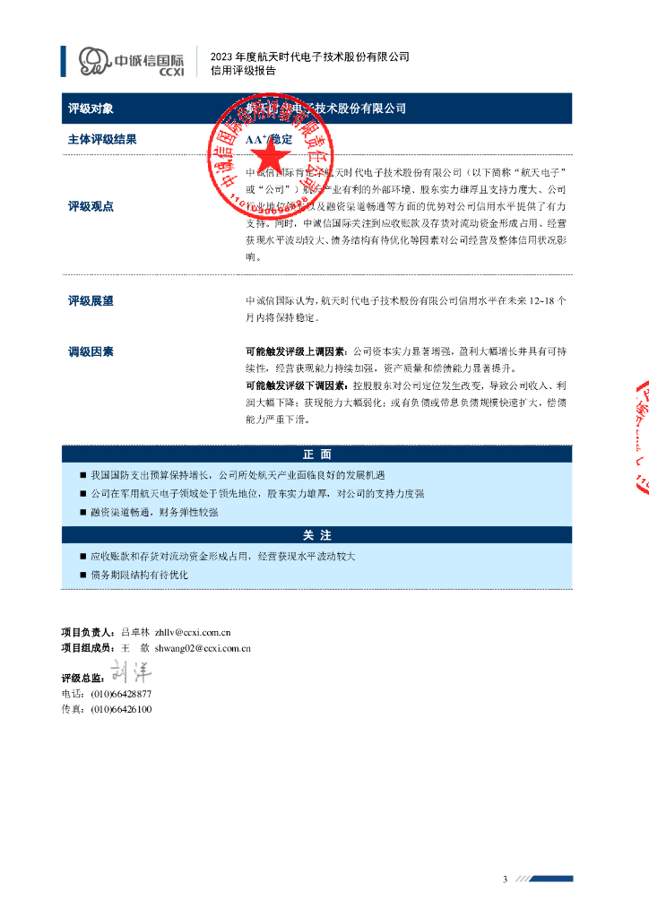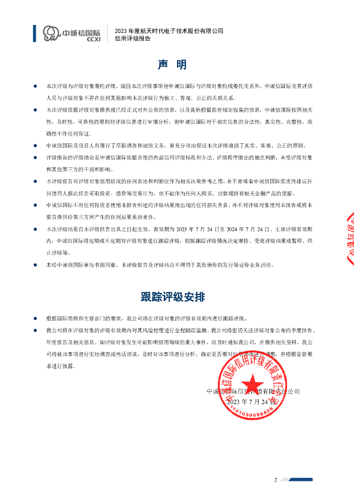 中诚信:航天时代电子技术股份有限公司主体信用评级报告及跟踪评级安排.pdf