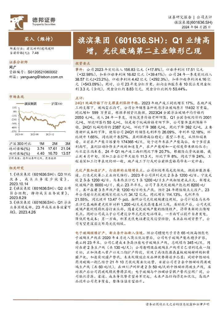 德邦证券:旗滨集团(601636)-Q1业绩高增,光伏玻璃第二主业雏形已现.pdf