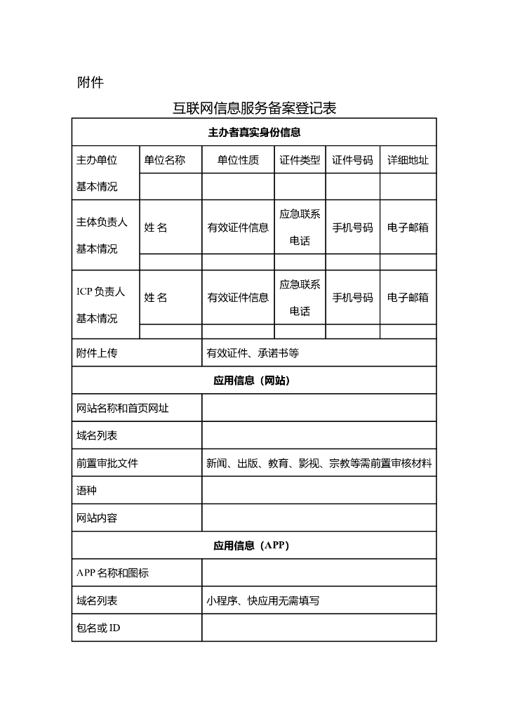 移动应用APP互联网信息服务备案登记表.doc