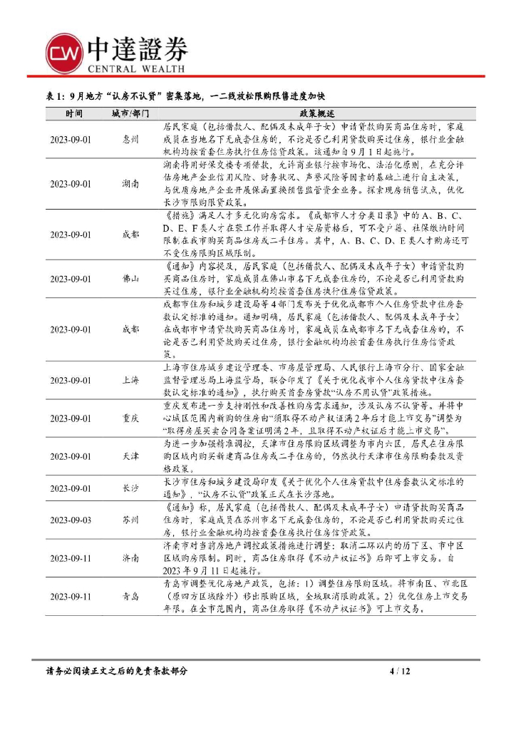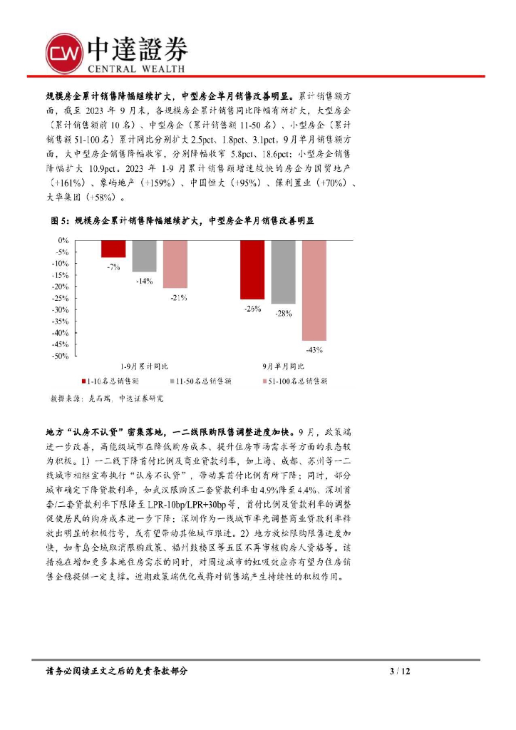 中达证券投资:房地产行业2023年9月房企销售数据点评:单月销售额止降回升,“认房不认贷”密集落地.pdf