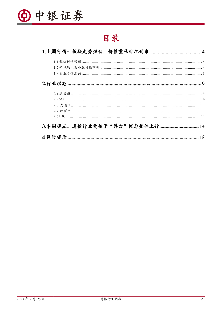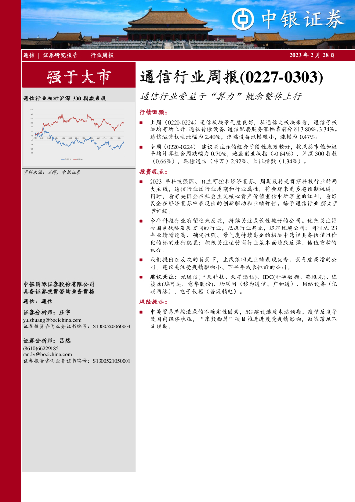 中银证券:通信行业周报:通信行业受益于“算力”概念整体上行.pdf