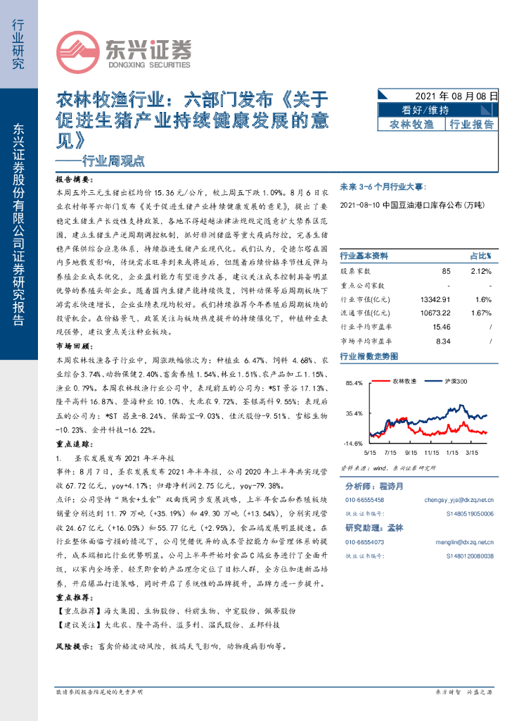 东兴证券:农林牧渔行业周观点:六部门发布《关于促进生猪产业持续健康发展的意见》.pdf
