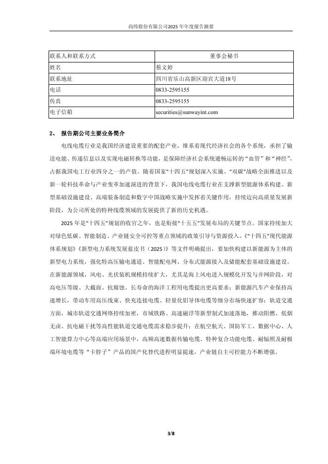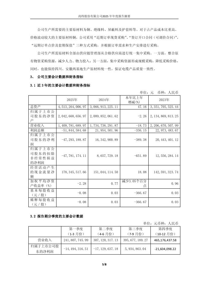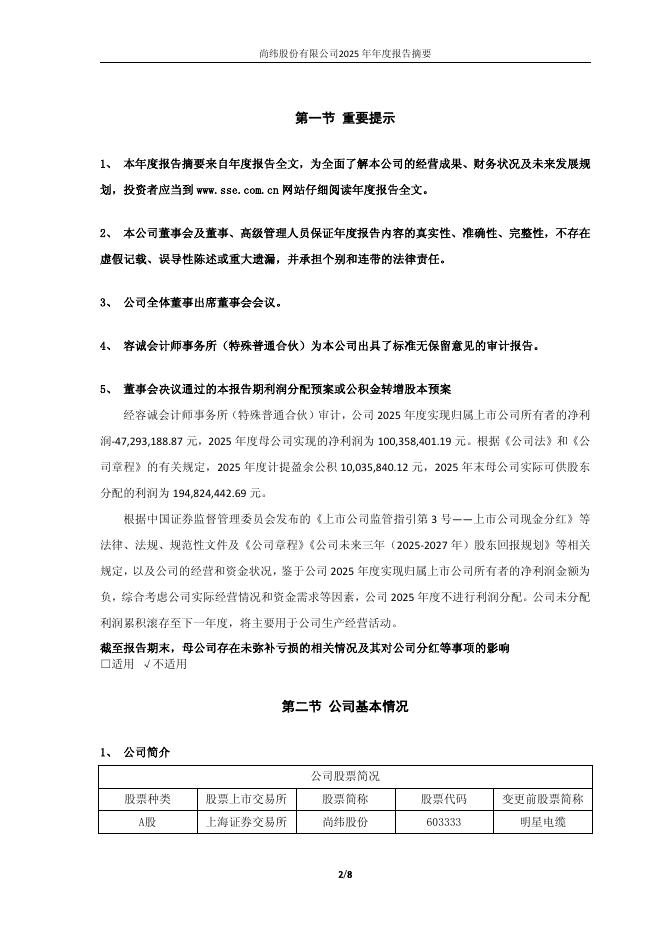 603333-尚纬股份:尚纬股份有限公司2025年年度报告摘要.pdf