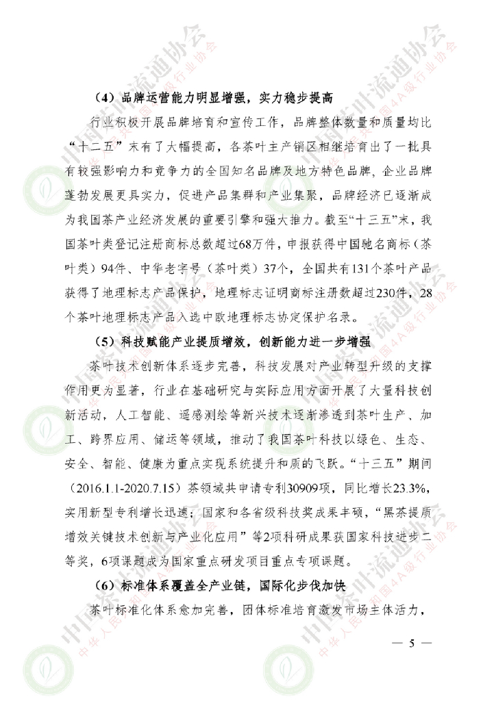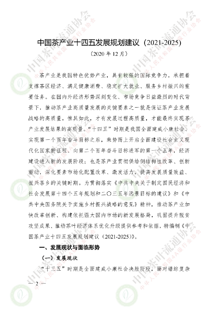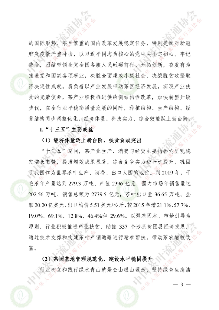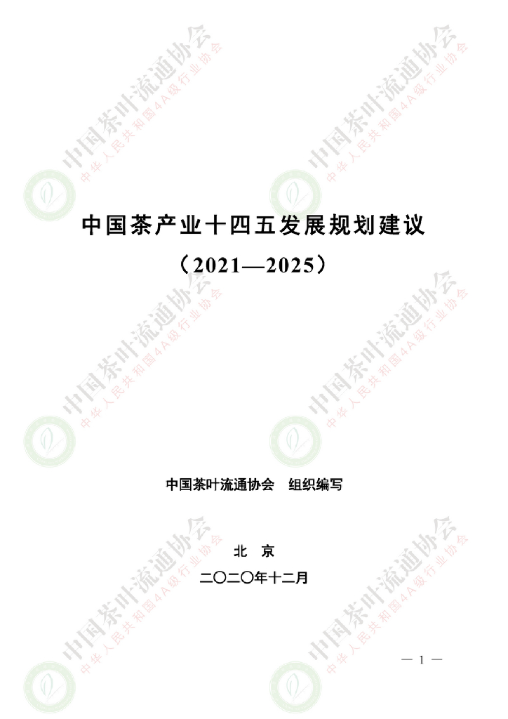 中国茶叶流通协会:中国茶产业十四五发展规划建议(2021-2025).pdf