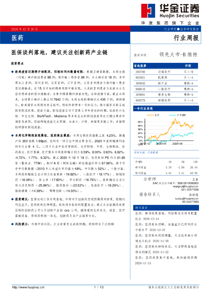 华金证券:医药行业周报:医保谈判落地,建议关注创新药产业链.pdf