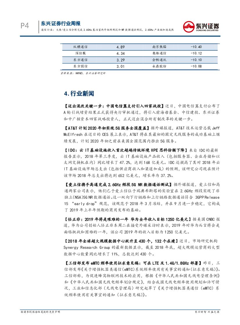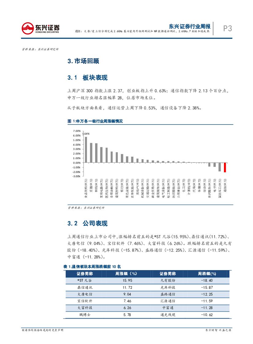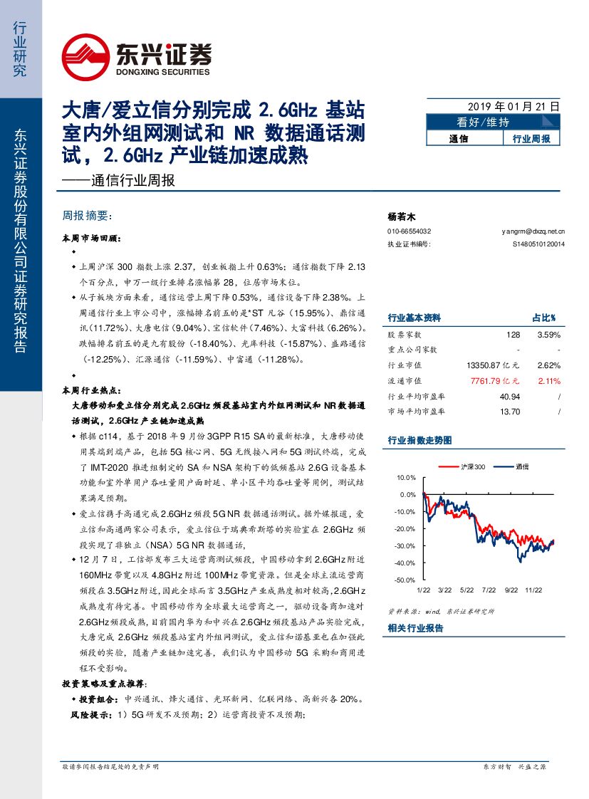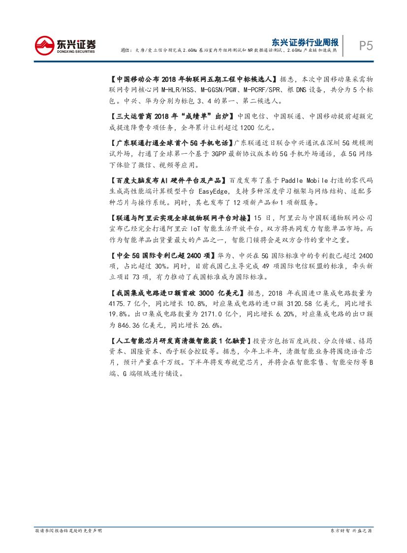 东兴证券:通信行业周报:大唐/爱立信分别完成2.6GHz基站室内外组网测试和NR数据通话测试,2.6GHz产业链加速成熟.pdf