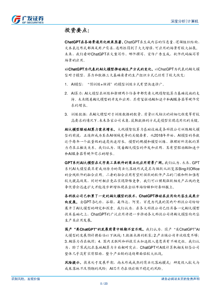 广发证券:ChatGPT通用化效果突破、前景广阔,国内Al产业链追赶仍有较大挑战.pdf