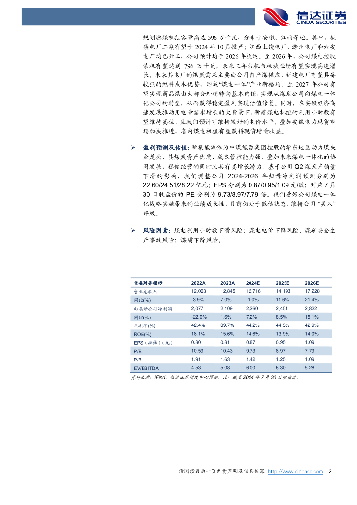 信达证券:新集能源(601918)-半年度业绩基本稳健,看好煤电一体化发展的长期优势.pdf