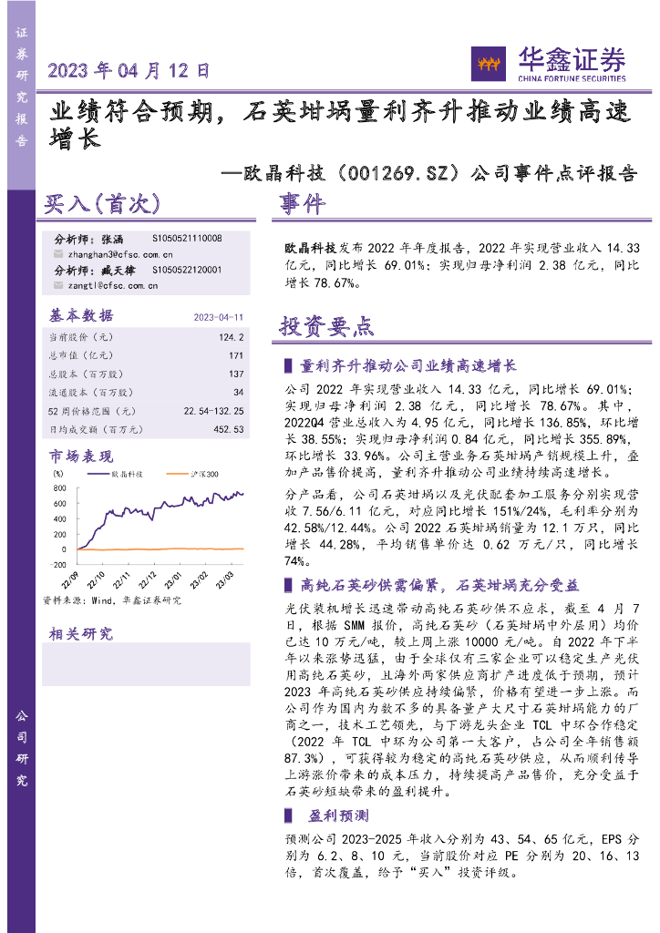 华鑫证券:欧晶科技(001269)-公司事件点评报告:业绩符合预期,石英坩埚量利齐升推动业绩高速增长.pdf