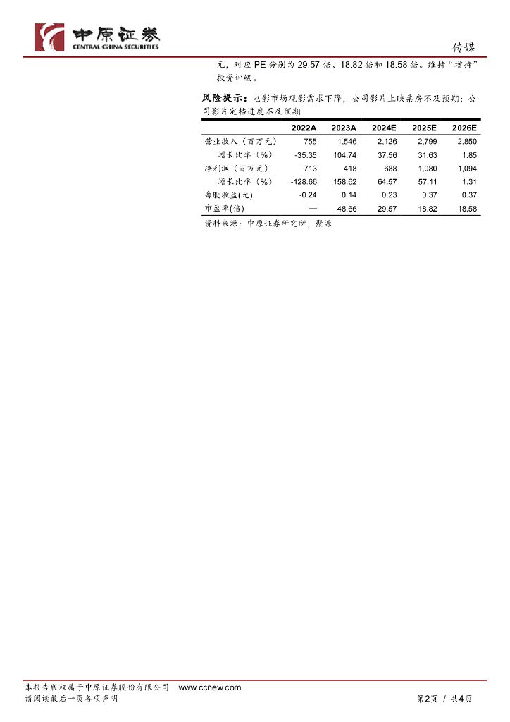 中原证券:光线传媒(300251)-中报点评:上半年电影电视剧双增长,关注后续影片定档进展.pdf