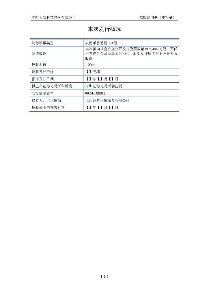 沈阳天安科技股份有限公司深交所创业板IPO上市招股说明书.pdf
