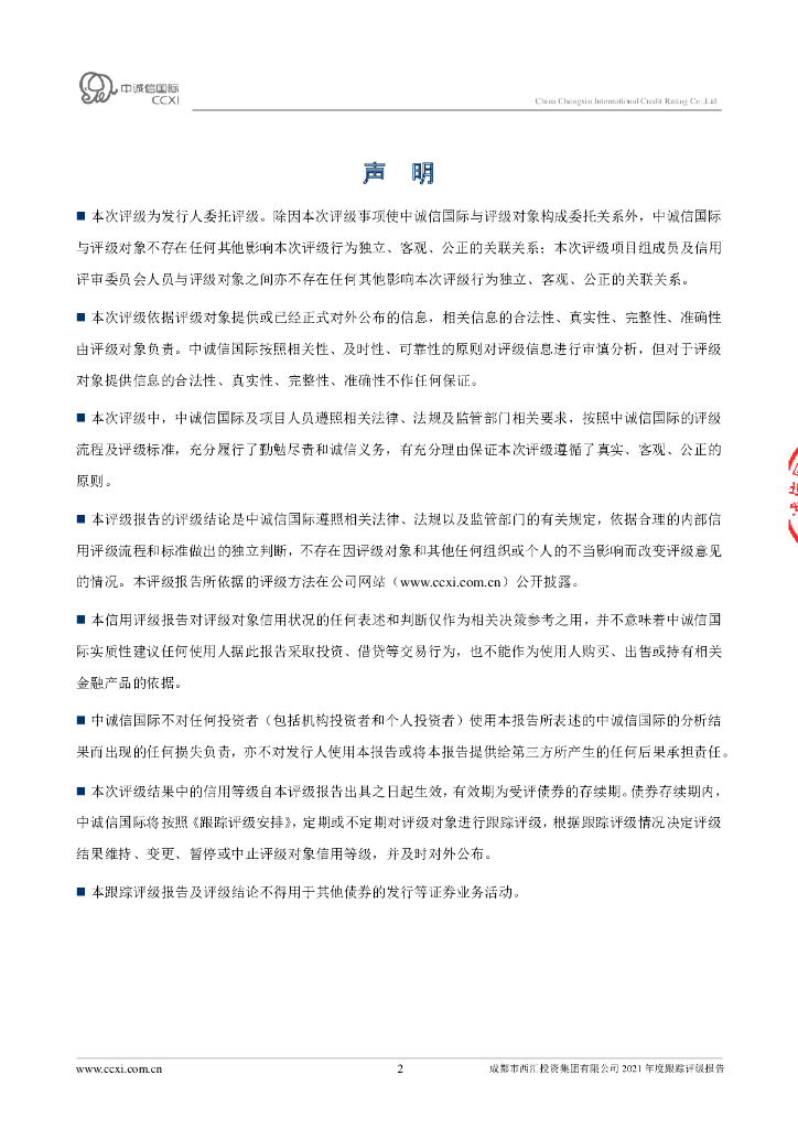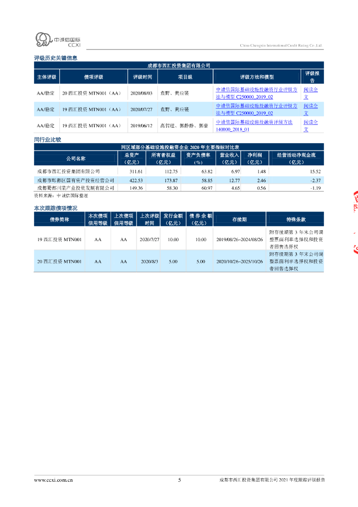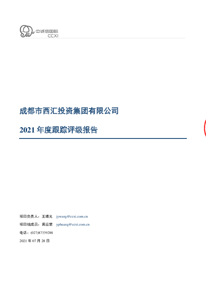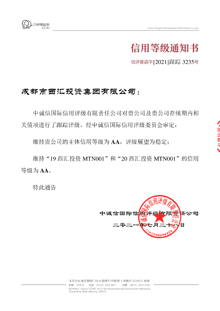 中诚信:成都市西汇投资集团有限公司2021年度跟踪评级报告.pdf