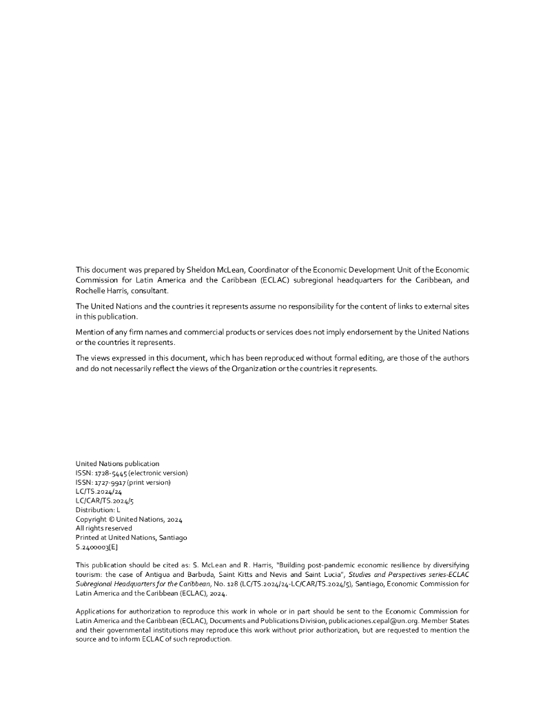 拉丁美洲经济委员会:2024年通过旅游业多样化建设疫情后的经济韧性报告:以安提瓜和巴布达、圣基茨和尼维斯和圣卢西亚为例(英文版).pdf