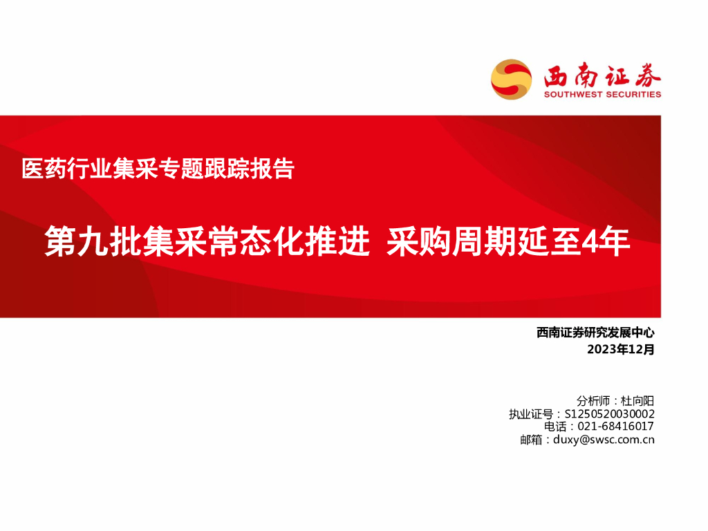 西南证券:医药行业集采专题跟踪报告:第九批集采常态化推进 采购周期延至4年.pdf
