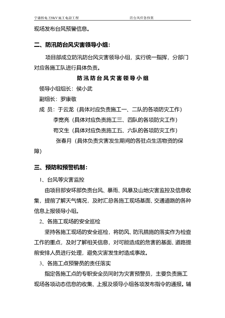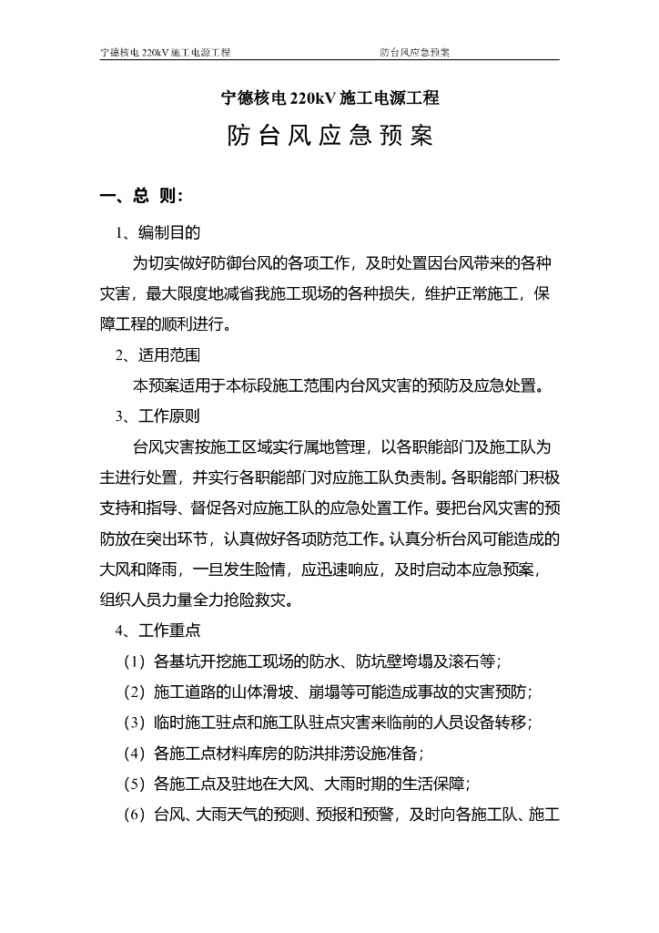 220kV施工电源工程防台风应急预案.doc