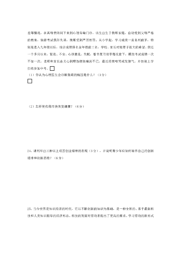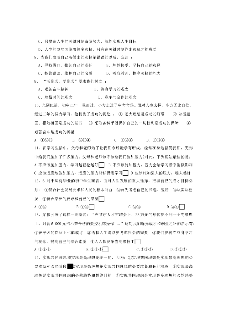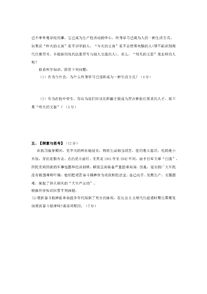 九年级政治第一学期第4单元测试卷(人教新课标版) .doc