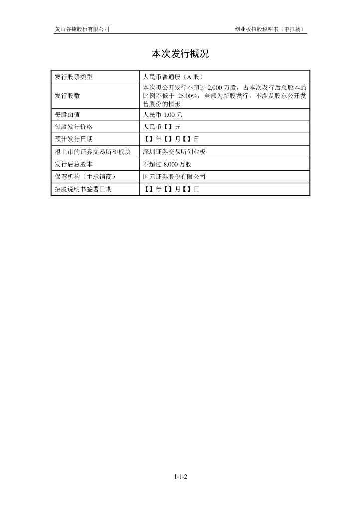 黄山谷捷股份有限公司深交所创业板IPO上市招股说明书.pdf