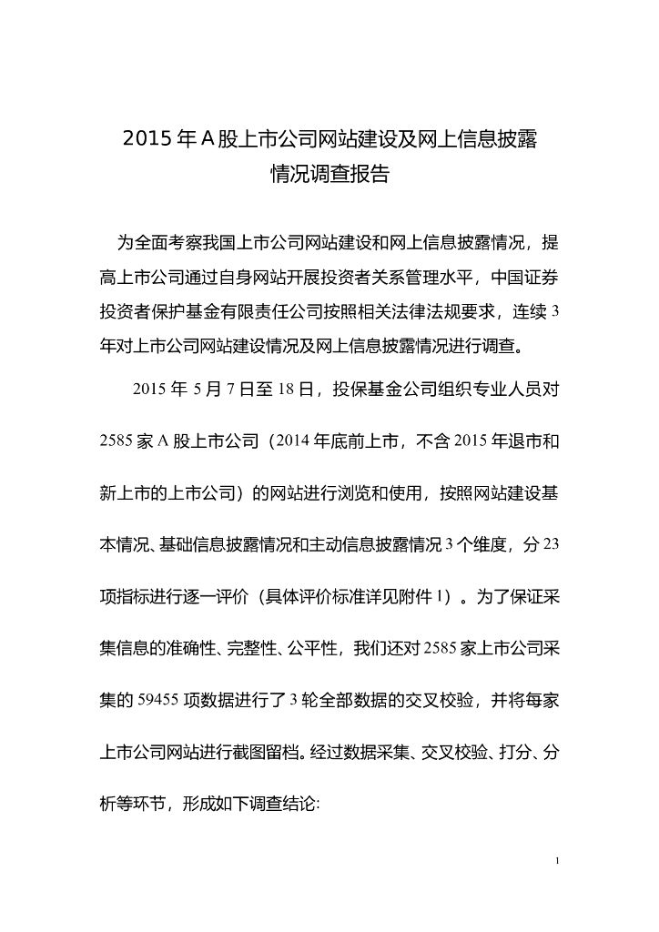中国证券投资者保护基金:2015年A股上市公司网站建设及网上信息披露情况调查报告.doc