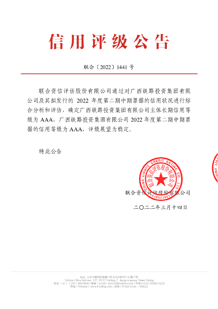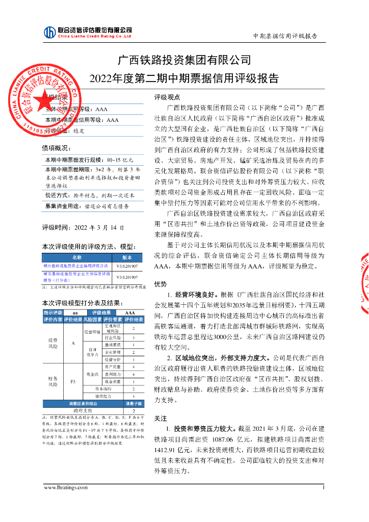 联合资信:广西铁路投资集团有限公司2022年度第二期中期票据信用评级报告.pdf