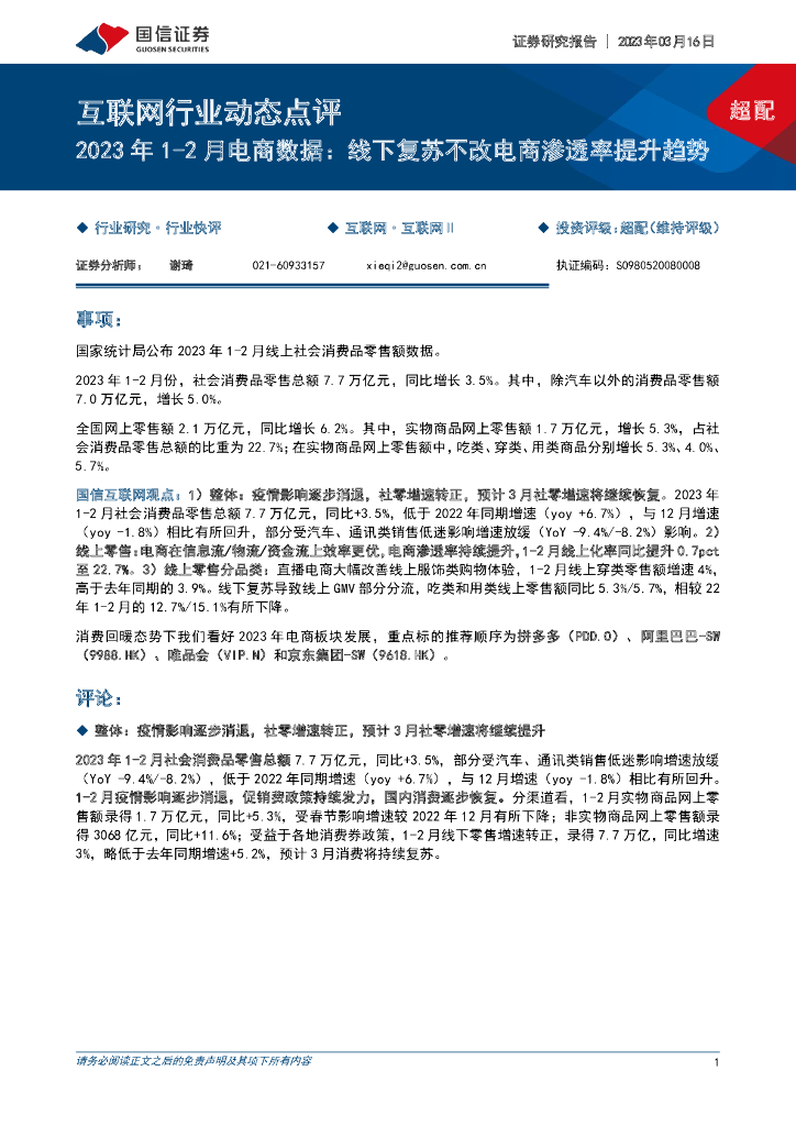 国信证券:互联网行业动态点评:2023年1-2月电商数据:线下复苏不改电商渗透率提升趋势.pdf